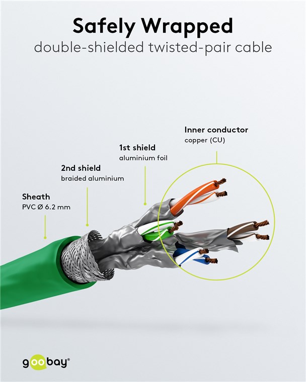 Weiterführende Links zu "Goobay 69756 RJ45-Patchkabel CAT 6A S/FTP (PiMF), 500 MHz mit CAT 7 Rohkabel, 1 m, grün, 10er-Set VPE Bulk Mindestbestellmenge 1"