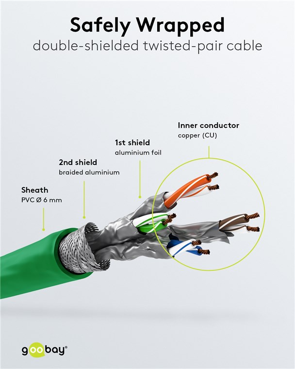 Weiterführende Links zu "Goobay 69374 CAT 6A Patchkabel, S/FTP (PiMF), 2 m, grün, 10er-Set VPE Bulk Mindestbestellmenge 1"