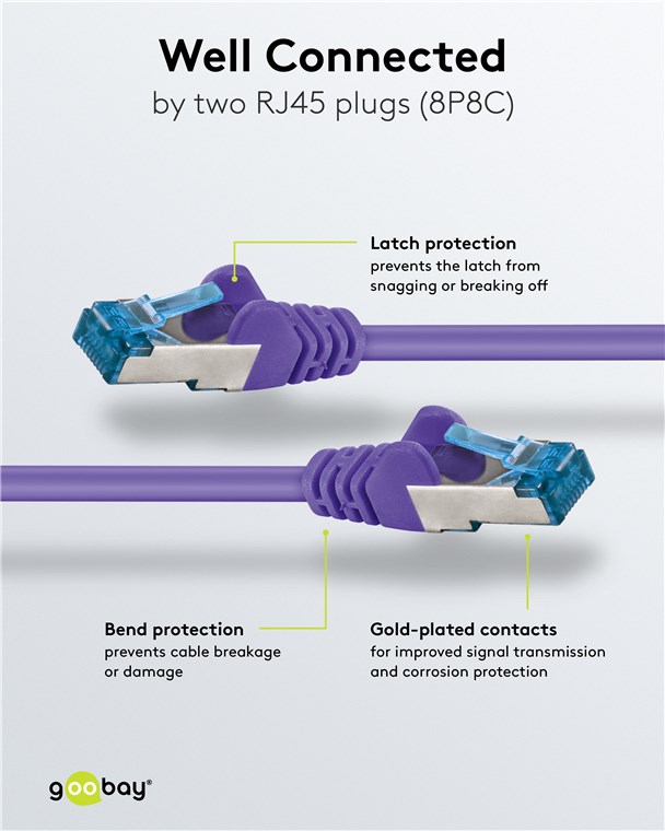 Produktinformationen "Goobay 95608 CAT 6A Patchkabel, S/FTP (PiMF), violett VPE Bulk Mindestbestellmenge 1"