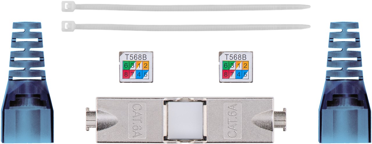 • Geschirmter Kabelverbinder (STP) zur Verlängerung oder Verbindung von 2x LAN-Installationskabeln
