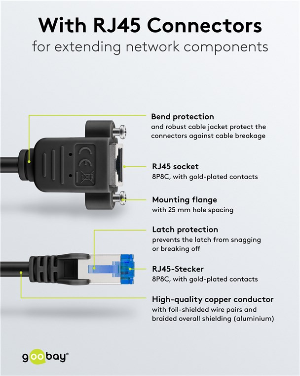 • Doppelt geschirmte LAN-Kabel-Verlängerung mit RJ45-Anschlüssen zur Verbindung von Netzwerk-Komponenten
