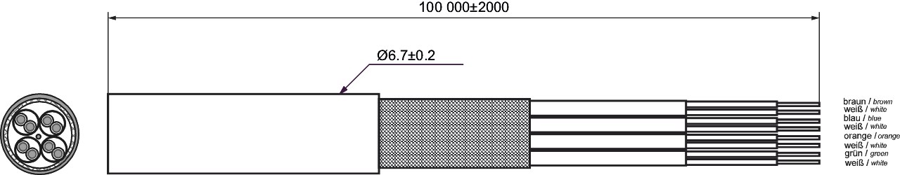 • Unkonfektioniertes Patchkabel zur Verarbeitung und Installation mit LSA-Anschlusstechnik. Keine Zulassung für den dauerhaften Einbau in Gebäuden.