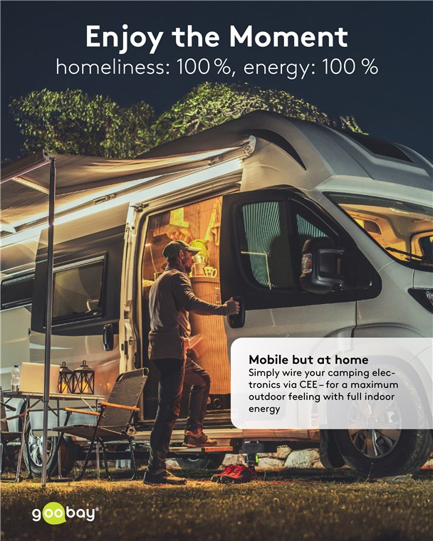• Abhängig von den lokalen Sicherheitsanforderungen auch als CEE-Adapter für Wohnmobil, Wohnwagen, Caravan und Camping bzw. auf dem Campingplatz einsetzbar