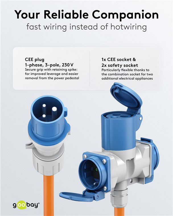 • Das elementare Camping-Zubehör: CEE-Adapter mit Kombisteckdose für den Anschluss von Wohnmobil, Wohnwagen oder Caravan ans Stromnetz auf dem Campingplatz