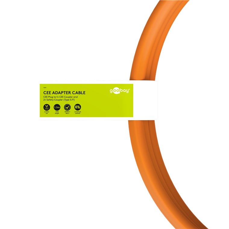 Produktinformationen "Goobay 76231 CEE-Adapterleitung, CEE-Stecker auf 1x CEE-Kupplung und 2x Schutzkontakt-Kupplung, 1,5 m VPE Sleeve Mindestbestellmenge 1"