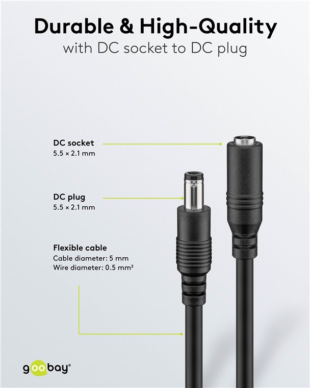Weiterführende Links zu "Goobay 76671 DC-Verlängerungskabel, 5 m, schwarz VPE Cable Tag Mindestbestellmenge 1"