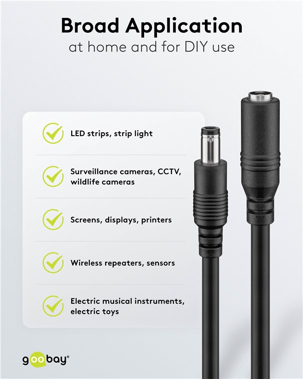 Weiterführende Links zu "Goobay 76672 DC-Verlängerungskabel, 1,5 m, schwarz VPE Cable Tag Mindestbestellmenge 1"