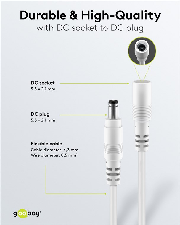Weiterführende Links zu "Goobay 76675 DC-Verlängerungskabel, 3 m, weiß VPE Cable Tag Mindestbestellmenge 1"