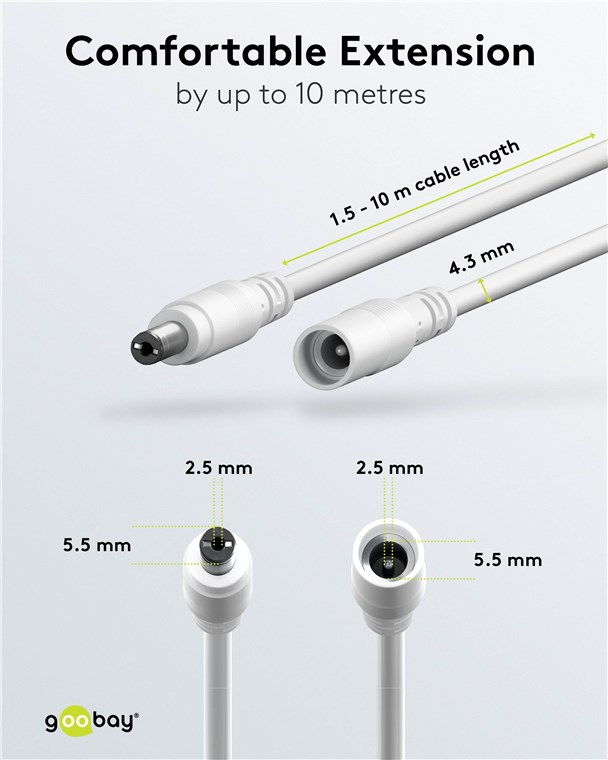 Weiterführende Links zu "Goobay 76679 DC-Verlängerungskabel, 3 m, weiß VPE Cable Tag Mindestbestellmenge 1"