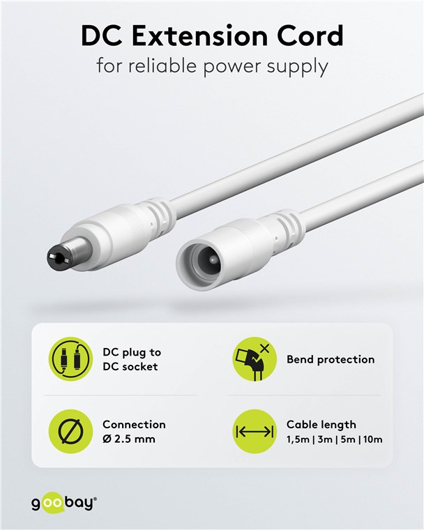 Weiterführende Links zu "Goobay 76680 DC-Verlängerungskabel, 5 m, weiß VPE Cable Tag Mindestbestellmenge 1"