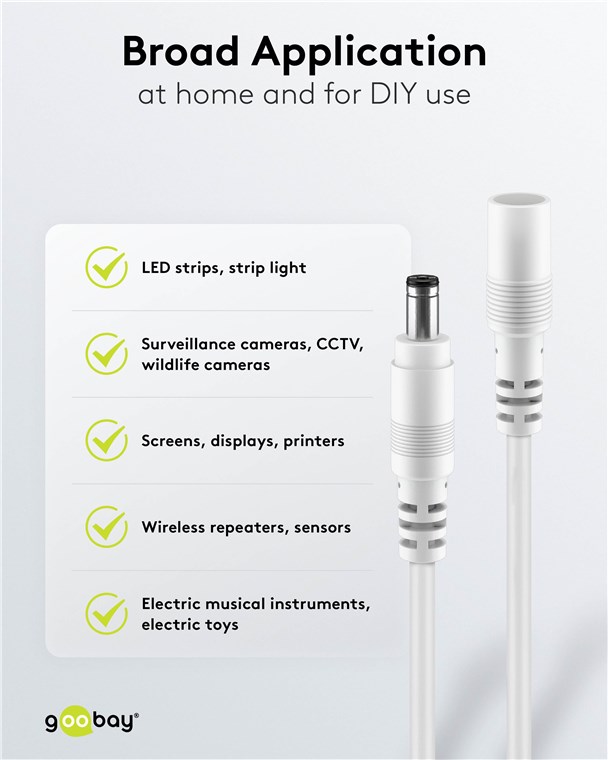 Produktinformationen "Goobay 76681 DC-Verlängerungskabel, 10 m, weiß VPE Cable Tag Mindestbestellmenge 1"
