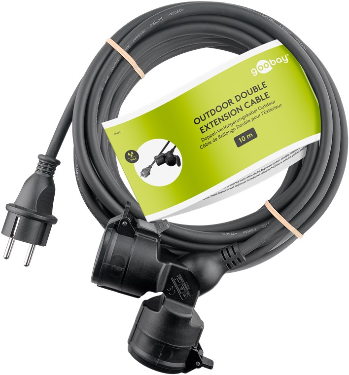 Weiterführende Links zu "Goobay 65435 Doppel-Verlängerungskabel Outdoor, 10 m, schwarz, (3*1,5 mm²) VPE Sleeve Mindestbestellmenge 1"