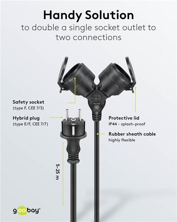 Produktinformationen "Goobay 65435 Doppel-Verlängerungskabel Outdoor, 10 m, schwarz, (3*1,5 mm²) VPE Sleeve Mindestbestellmenge 1"