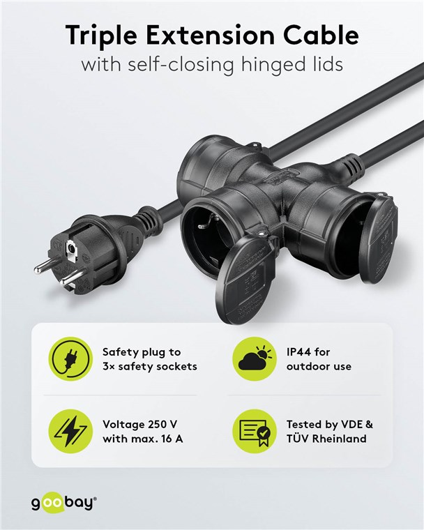 Weiterführende Links zu "Goobay 65438 Dreifach-Verlängerungskabel Outdoor, 10 m, schwarz, (3*1,5 mm²) VPE Sleeve Mindestbestellmenge 1"
