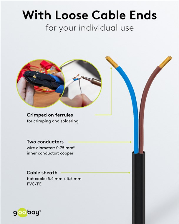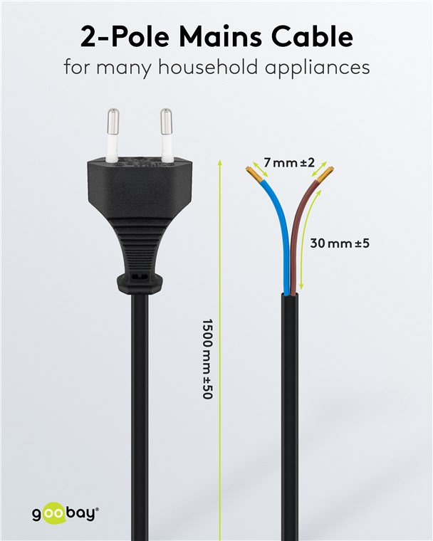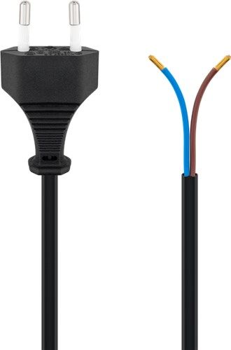 Goobay 50502 Kabel mit Eurostecker zum Konfektionieren, 1,5 m, Schwarz, (2*0,75 mm²) VPE Retail Polybag Mindestbestellmenge 1