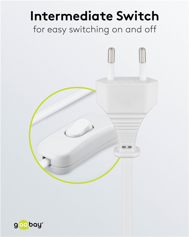 Produktinformationen "Goobay 51349 Kabel mit Eurostecker zum Konfektionieren - mit Schalter, 1,5 m, Weiß, (2*0,75 mm²) VPE Retail Polybag Mindestbestellmenge 1"