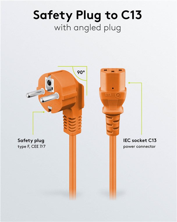 Abgewinkeltes Kaltgeräte-Anschlusskabel, 5 m, Orange Kabellänge: 5 m