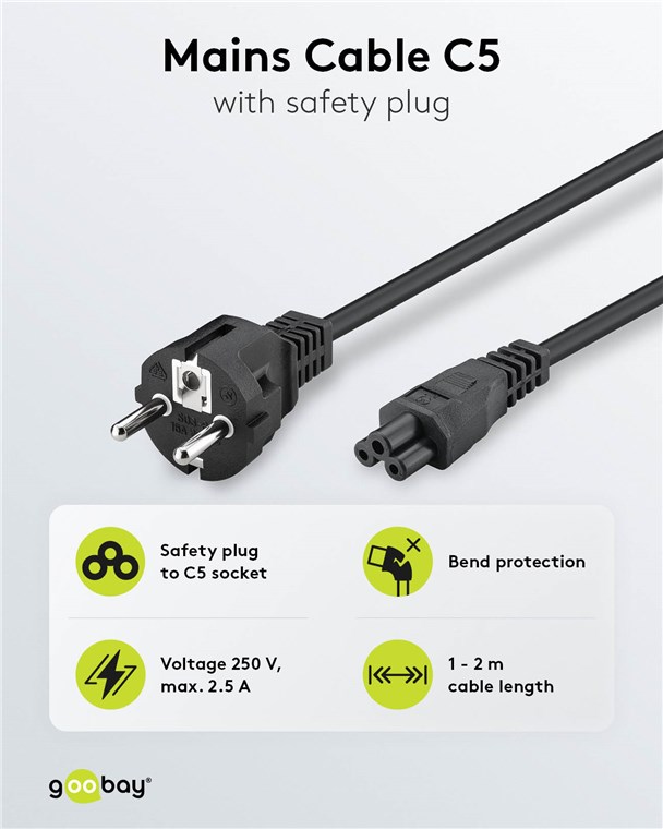Weiterführende Links zu "Goobay 70765 Netzkabel mit Schutzkontakt, 2 m, schwarz, (3*0,75 mm²) VPE Retail Polybag Mindestbestellmenge 1"