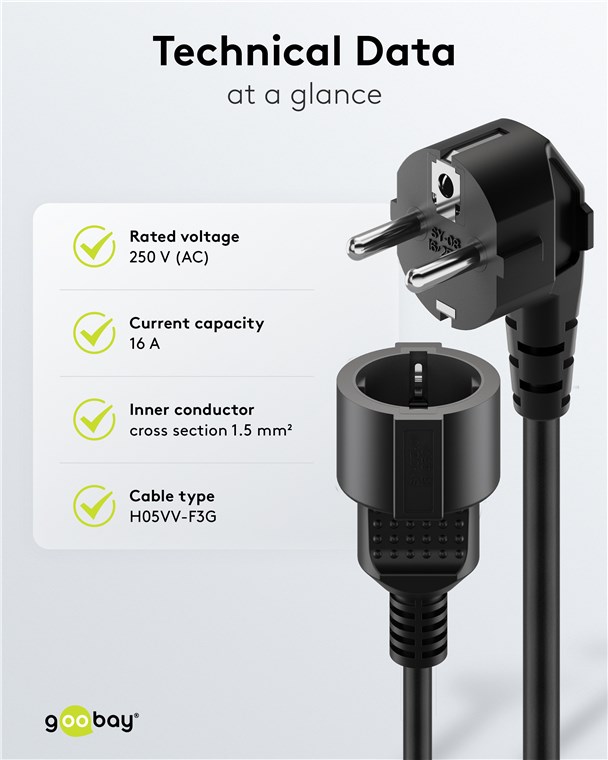 Weiterführende Links zu "Goobay 93093 Verlängerungskabel Schutzkontakt, 3 m, Schwarz, (3*1,5 mm²) VPE Retail Polybag Mindestbestellmenge 1"