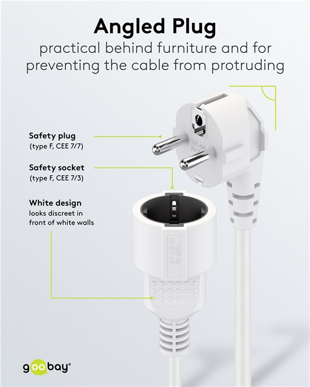 • Platzsparendes Design durch abgewinkelten Schutzkontaktstecker