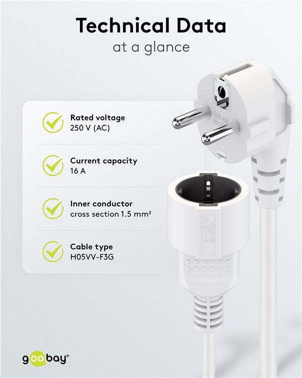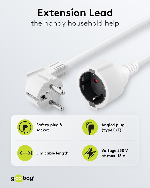 Weiterführende Links zu "Goobay 93088 Verlängerungskabel Schutzkontakt, 5 m, weiß, (3*1,5 mm²) VPE Retail Polybag Mindestbestellmenge 1"