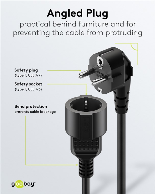 • Platzsparendes Design durch abgewinkelten Schutzkontaktstecker