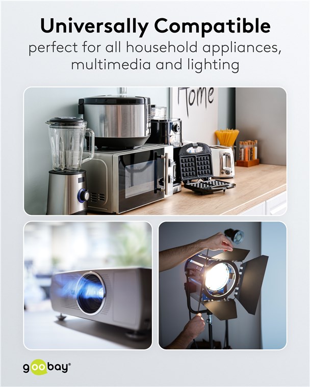 • Durch das Netzkabel lassen sich Geräte flexibel überall im Innenbereich anschließen.