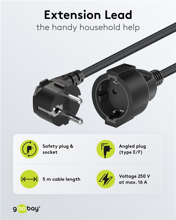 Weiterführende Links zu "Goobay 93094 Verlängerungskabel Schutzkontakt, 5 m, Schwarz, (3*1,5 mm²) VPE Retail Polybag Mindestbestellmenge 1"