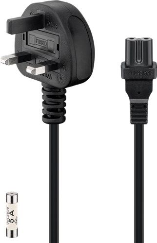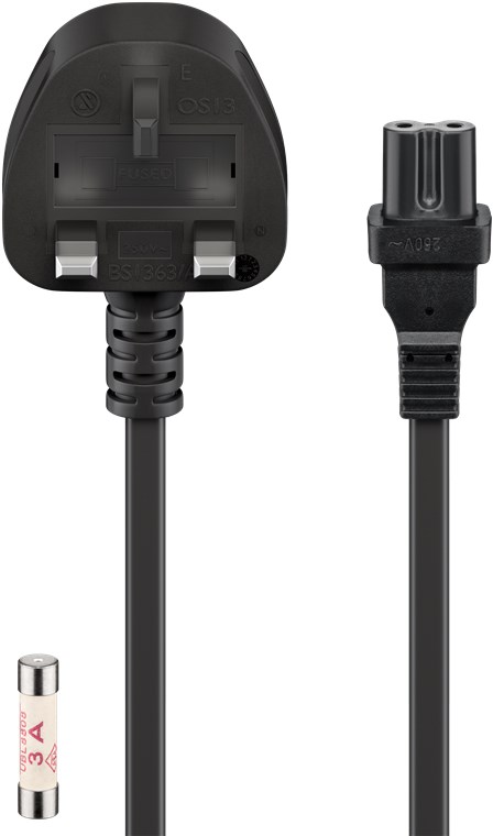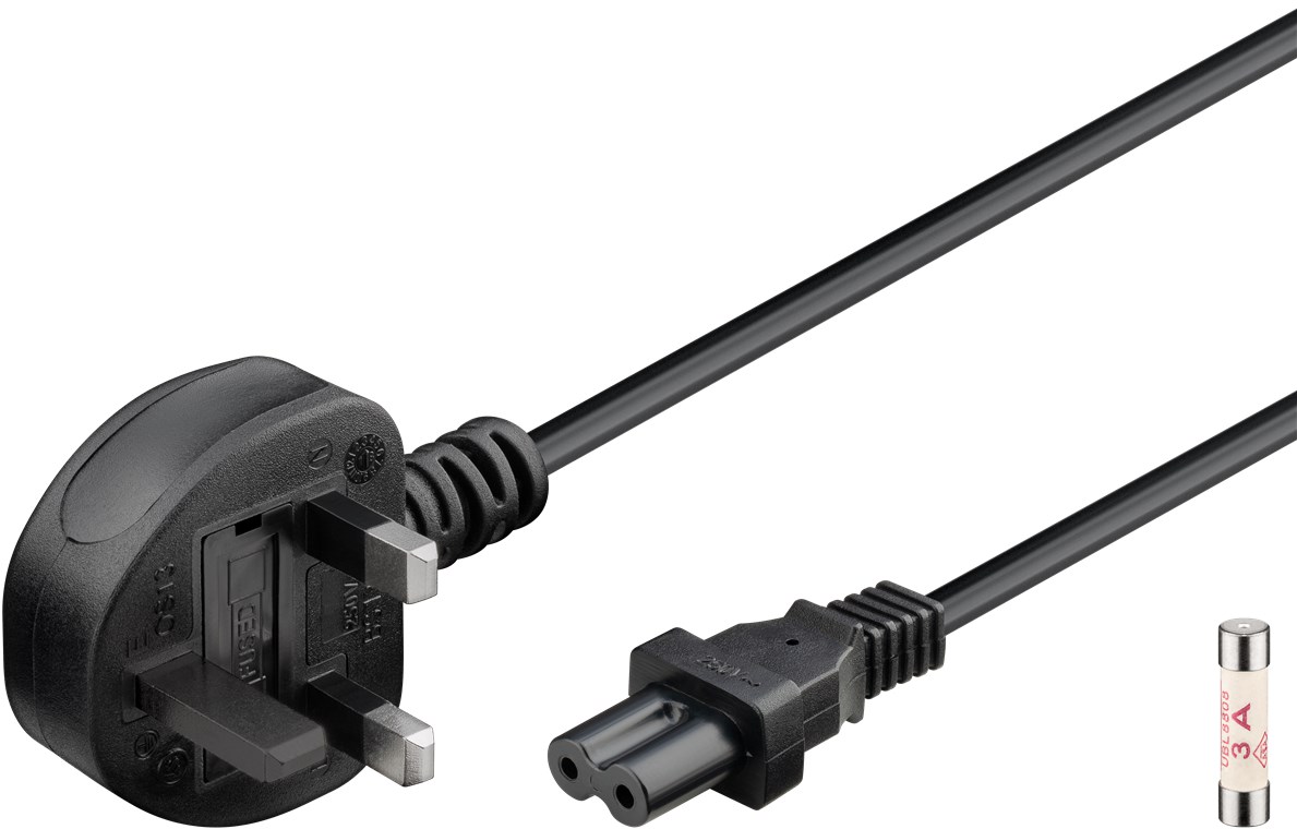 Goobay 51323 Kaltgerätekabel UK, 1,8 m, schwarz, (3*1 mm²) VPE Retail Polybag Mindestbestellmenge 1