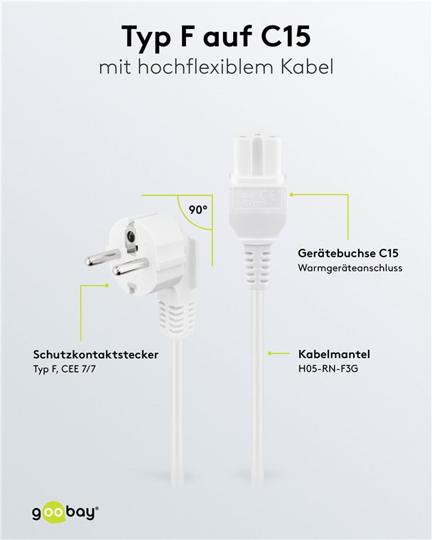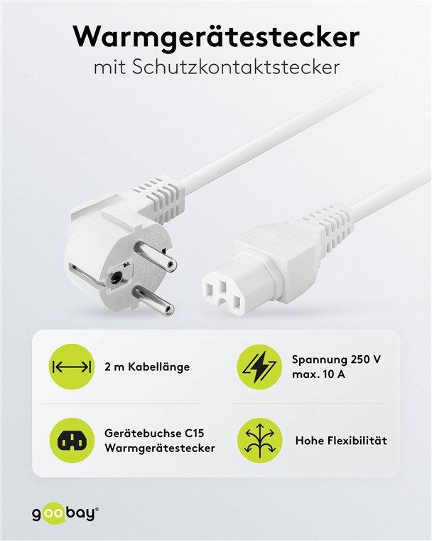 Weiterführende Links zu "Goobay 30370 Warmgeräte-Anschlusskabel, 2 m, Weiß, (3*0,75 mm²) VPE Retail Polybag Mindestbestellmenge 1"