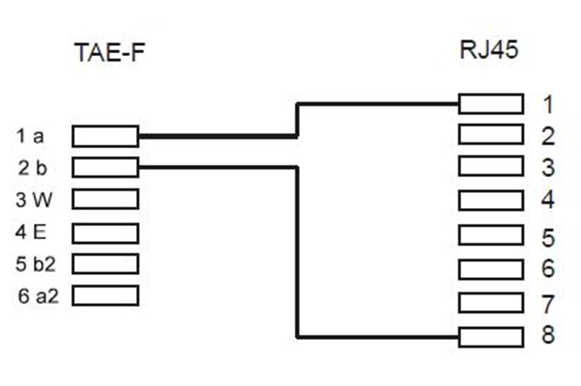 TAE-F-Stecker (PIN 1/2) > RJ45-Buchse (8P2C) (PIN 1/8)