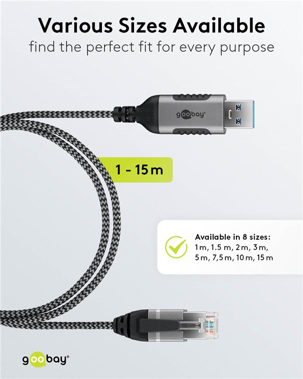 Goobay 74398 Ethernet-Kabel USB-A 3.0 auf RJ45, Slim, 7,5 m VPE Retail Polybag Mindestbestellmenge 1