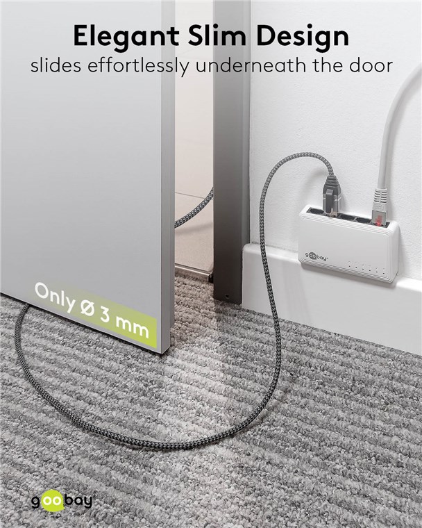 • Das elegante Slim-Design (Ø 3 mm) des CAT-6-Kabels sorgt für eine dezente Optik und ist die kompakte, leichte Lösung unterwegs und auf Reisen