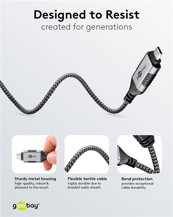• Der geflochtene, strapazierfähige Textilmantel des USB-Kabels hat eine angenehme Haptik und ist schonend auf sensiblen Oberflächen