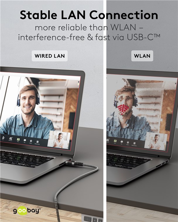 • Das LAN-Kabel ermöglicht eine stabile, kabelgebundene Internetverbindung an USB-C™-Geräten ohne separaten Netzwerkkabel-Anschluss