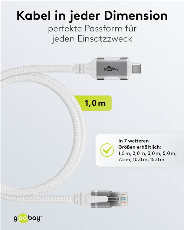 Goobay 74179 Ethernet-Kabel USB-C™ 3.1 auf RJ45, 7,5 m VPE Retail Polybag Mindestbestellmenge 1