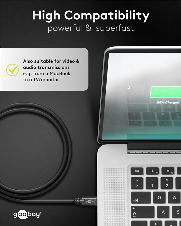 • Dank Schnellladefunktion über Power Delivery lädt das Kabel Geräte wie Smartphones und Laptops mit Spitzengeschwindigkeiten auf