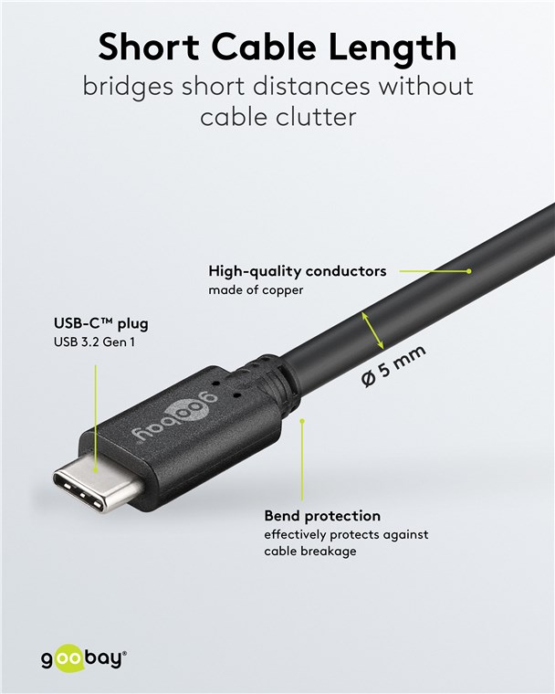 Goobay 67975 USB-C™-Kabel, 0,5 m, schwarz VPE Cable Tag Mindestbestellmenge 1