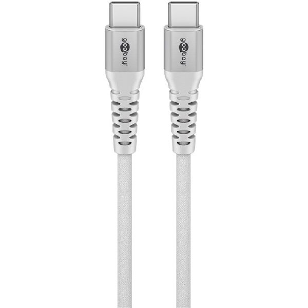 Goobay 70193 USB-C™ Supersoftes Textilkabel mit Metallsteckern, 1 m, weiß VPE Retail Polybag Mindestbestellmenge 1