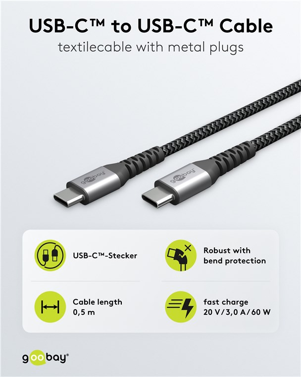Produktinformationen "Goobay 49301 USB-C™-auf-USB-C™-Textilkabel mit Metallsteckern (spacegrau/silber), 0,5 m VPE Retail Polybag Mindestbestellmenge 1"