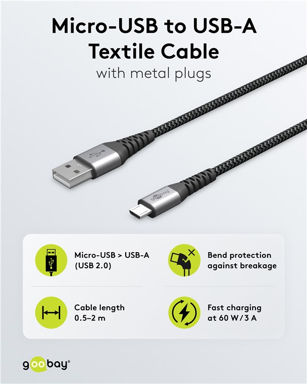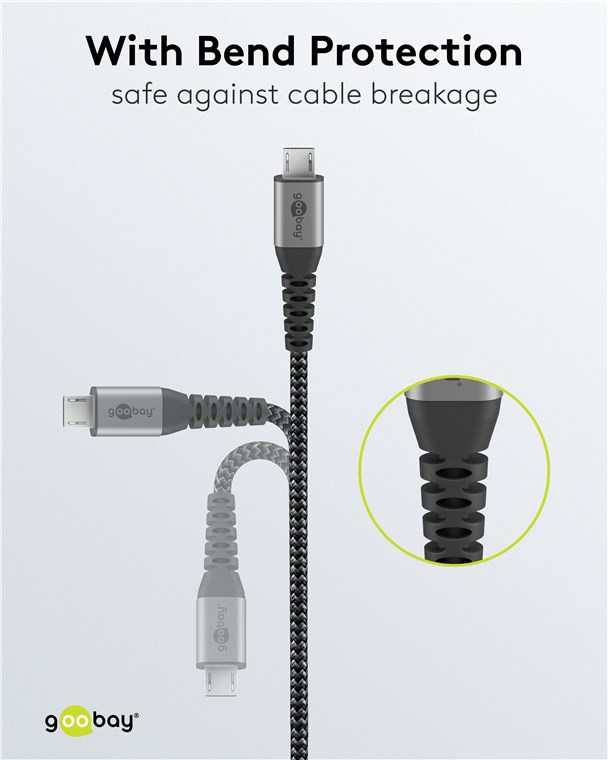 Weiterführende Links zu "Goobay 49273 Micro-USB-auf-USB-A-Textilkabel mit Metallsteckern (spacegrau/silber), 0,5 m VPE Retail Polybag Mindestbestellmenge 1"
