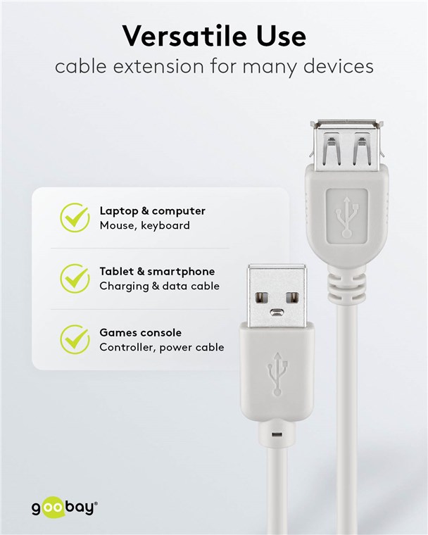 Goobay 68715 USB-A-Verlängerung, 1,8 m, grau VPE Cable Tag Mindestbestellmenge 10