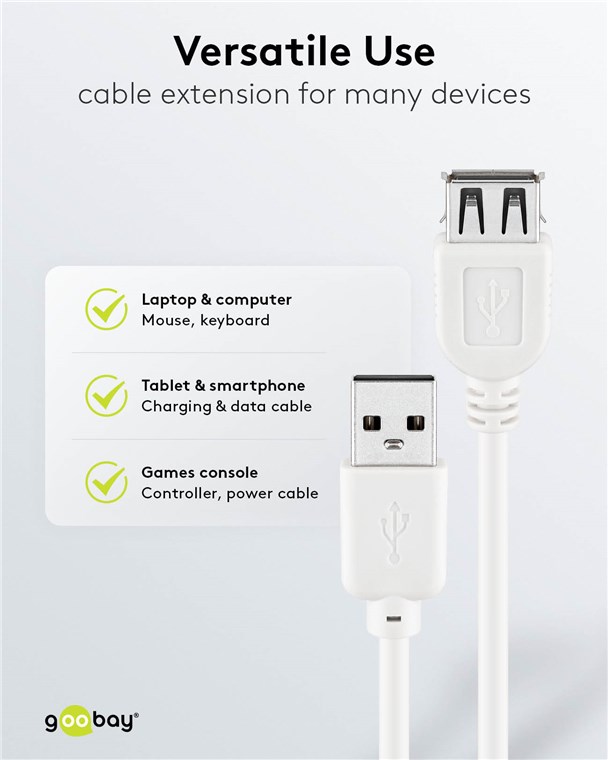 Goobay 96198 USB-A-Verlängerung, 1,8 m, weiß VPE Cable Tag Mindestbestellmenge 1