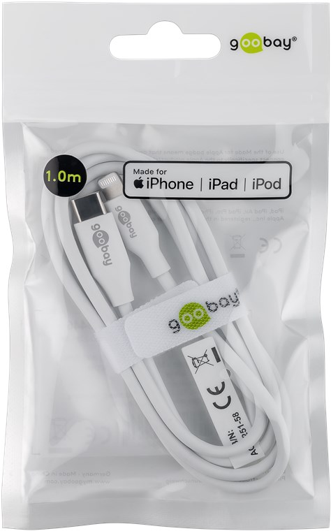 Produktinformationen "Goobay 39446 Lightning USB-C™ Lade- und Synchronisationskabel, 1 m, weiß VPE Retail Polybag Mindestbestellmenge 1"
