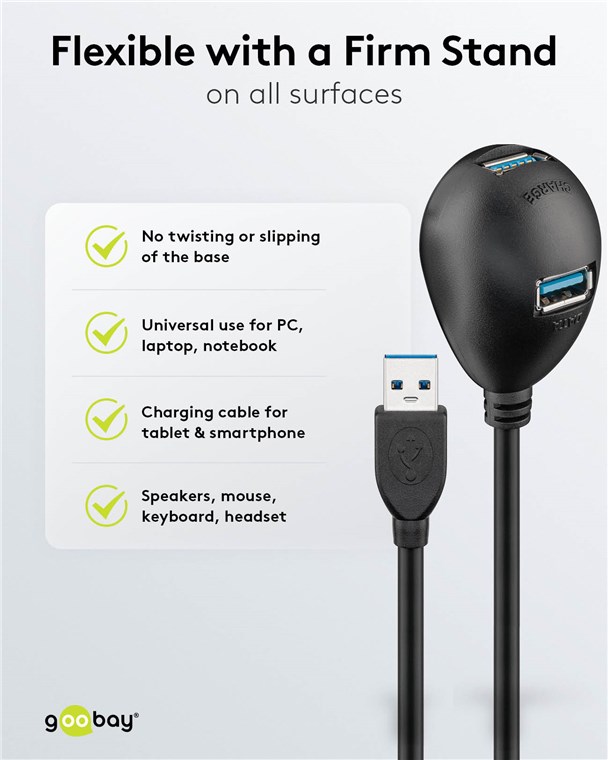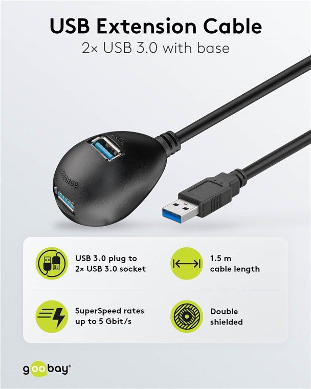 Weiterführende Links zu "Goobay 95918 USB-A-Verlängerung mit Standfuß, 1,5 m, schwarz VPE Cable Tag Mindestbestellmenge 1"