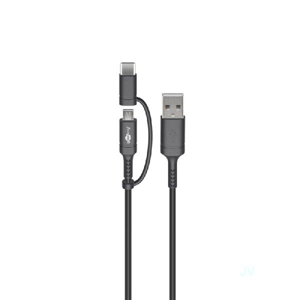 Produktinformationen "Goobay 71892 2in1-Kabel USB-A auf Micro-B/USB-C™, 1 m, schwarz VPE Bulk Mindestbestellmenge 1"