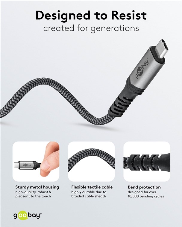 Weiterführende Links zu "Goobay 74211 USB-C™-Kabel, USB4™, 1 m, schwarz;silber VPE Cable Tag Mindestbestellmenge 1"