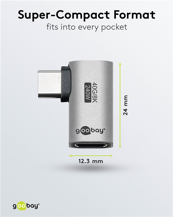 Goobay 74442 USB-C™-Adapter vertikal 90° lang, USB4™ VPE Retail Polybag Mindestbestellmenge 1