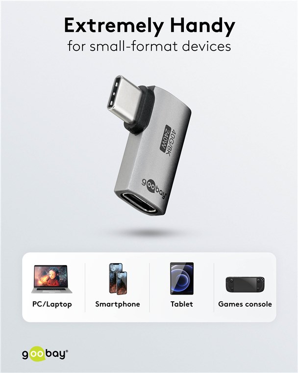 Weiterführende Links zu "Goobay 74441 USB-C™-Adapter horizontal 90°, USB4™ VPE Retail Polybag Mindestbestellmenge 1"