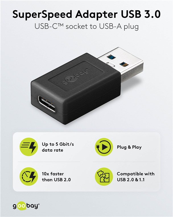 Weiterführende Links zu "Goobay 45400 USB-Adapter USB-A auf USB-C™, schwarz VPE Retail Polybag Mindestbestellmenge 1"